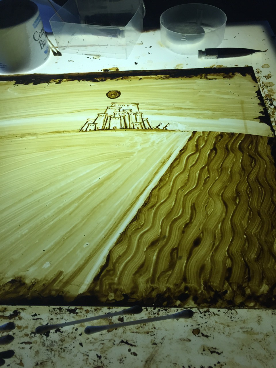 Ink drawing on a lightbox under the camera